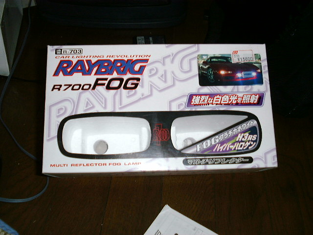 フォグランプとかつける。2000年1月23日さて、マフラーを替えた次の日…(汗 プロジェクターランプの宿命なのか、夜走ると暗いのでフォグランプをつけてみました。 ![]() 製品の写真を撮る前につけてしまったので空箱ですけど…(汗) RAYBRIGのR700FOGというフォグランプです。どこにも「競技用」と書いてないのでこのまま 車検行けると思います。 コレを選んだ訳は店頭で一番明るかったから!。ほかのデモも点けて正面から見てたら前が 見えなくなってましたけど…(汗 見れば分かるようにダイクマ平塚店で13800円でした。 ![]() 夜にロービームだけを点けた状態がこれ。 フォグランプとは関係ないけど、色が黄色いっぽいなぁ…(汗 一応、白いバルブ付けてるはずなんだけどなぁ… ![]() フォグランプをつけた状態。デジタルカメラの特性で、黄色っぽくみえますが、実物はすごく 白いです。しかも、明るい! もしかすると、対向車とか眩しいかも…。でも、暗くて事故るよりマシかな? 戻る |