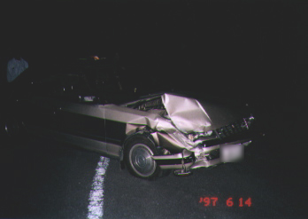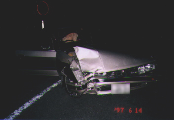 本当はガードレールに「つき刺さって」いたんだけど、周りの