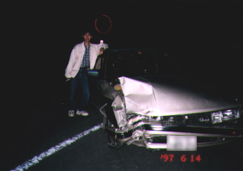 ぶつかったのは柱のところです。車は廃車だけど、