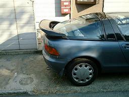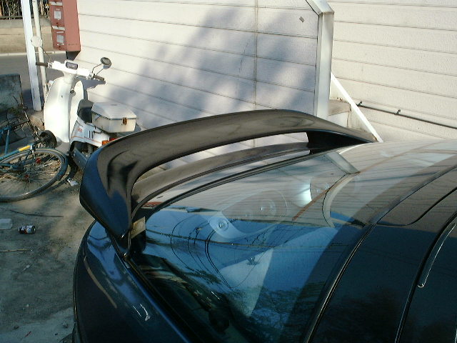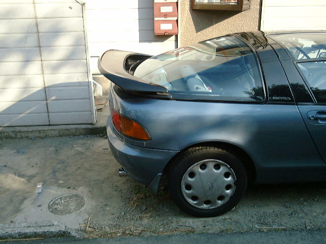 これがふつーの状態。やっぱしセラだねぇぃ(謎)でも、ちょっぴりオシリがさびしい… ![]() それで、これが増設用の羽。 地元の友達のノートパソコンの修理代としてもらったMR2用のリアウイング。元はグリーンだったんですけど、マーチの黒に塗ってみました。塗料塗って、コンパウンドで磨いて…まぁ、初めてにしてはそこそこの出来(笑) 塗ってて溶剤でラリりそうになったりの苦労の結晶(笑) ちなみに、左上にあるのはハムスターのケージです。左側が「じろうくん」、右側が「しんのすけくん」宅 「しんのすけ」君は2000年10月27日に、妹の所に引き取られた「じろう」君は11月頃にそろって他界しました(涙) ![]() これがつける前のリアビュー。やっぱり、さびしい… ![]() 羽をつけてみたのがこの写真。 取り付け方は、接着面を脱脂(無水エタノール使用)し、強力両面テープ(3Mの外壁面用)を使って固定。 運転中に飛んでいかないように、ゴムスポイラーとネジ数本でとめてあります。 ゴムスポイラーと羽の足の接地面に隙間が出来てしまったので、シリコンコーキング剤を使って埋めておきます。 ちゃんとくっつくまでは飛ばさないほうがいいでしょうね(汗 ちなみに、リアハッチのアブソーバー取り付け部分のガムテープは気にしない、きにしない(汗 ![]() 全体像がこれ。んー、かっこよくなったなぁ。 リアの「のぺっ」とした感じが「しゃきーん」とすっきりしました。 羽があるのと無いのとじゃずいぶん印象ちがいますね。それに、怖いほどピッタリ合ってますねぇ ![]() 真横から見るとこんな感じ。 ![]() リアはこんな感じ。 ちなみに、使ったものは、スプレー塗料×3、コンパウンド、強力両面テープ、シリコンコーキング剤、木ネジ(5cm)×6、あと羽。費用的には5000円掛かってないとおもいます。作業日数は、暇なときを見計らってやっていたので約1週間くらいです。 戻る |